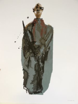 drawings 2012 11 warrier blue 12 standing woman sepia technical details: eastindian black and sepia ink african clay and torn coloured paper on paper size 50x65 cm