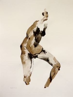 drawings 2012 27 sitting man from the back 28 woman in motion technical details: eastindian black and sepia ink african clay on paper size 50x65 cm