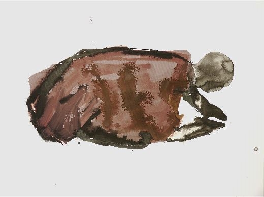 drawings 2012 16 pleading position technical details: eastindian black and sepia ink african clay and torn coloured paper on paper size 50x65 cm