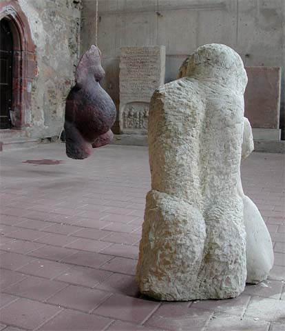 Klosterkirche Grimma 2006 couple - masked man pregnant woman 2005 sandstone 70 x 80 x 100 cm 400 kg