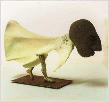 fishbone, aluminiumcement, bronze on iron plate