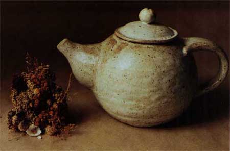 Teekanne , Steinzeug, Handaufbau Ton: Irak, Glasur OpaqueweissDurchmesser 24cmHöhe 20 cm