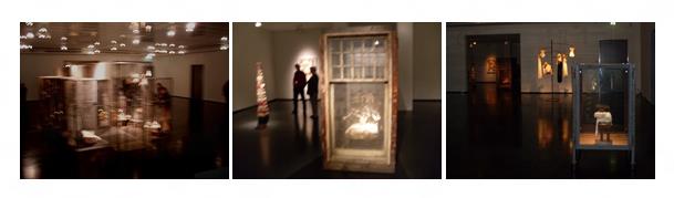 ![]() ![]() LOUISE B. ist dangereuse “I had a flashback of something that never existed.” (Louise Bourgeois) Schon seit Wochen hatte die riesige Spinne, weithin sichtbar, auf dem Platz zwischen Hamburger Kunsthalle und Galerie der Moderne das Ereignis angekündigt – die Ausstellung PASSAGE DANGEREUX von Louise Bourgeois. Diesmal sollte mir keine solche Schlappe passieren wie 1996 in den Deichtorhallen, bei meiner ersten Begegnung mit Bourgeois, wo ich wegen einer schwachen Kamerabatterie nur wenige Fotos machen konnte. Gleich am Eröffnungstag ging ich gut ausgerüstet zur Ausstellung. Zuerst fotografierte ich auf dem Vorplatz von allen Seiten die Spinne Maman. Die Ausstellung hatte in diesen Morgenstunden nur wenige Besucher. Der zentrale, quadratische Saal lag im Halbdunkel. Im Schein der effektvoll platzierten Halogenlämpchen tauchten die Exponate wie weit auseinander liegende Inseln aus der Dämmerung auf. Zunächst betrat ich jedoch den hellerleuchteten Raum gleich am Eingang mit der großformatigen Serie „À l’infini“, einer Reihe von vierzehn einander ähnlichen kolorierten Zeichnungen aus dem Jahr 2008. Ich war begeistert von der Schroffheit der schwarzen Linien auf weißem Papier und von der Spontanität der Überarbeitung mit Bleistift und Tempera, von der sparsamen Farbgebung, die sich beschränkte auf Nuancen von Schwarz und Rot bis hin zum Rosa. Zeichnungen von radikaler Entschlossenheit, große Skizzen, rasant und flüchtig, dabei leicht wie Wolken, die sich langsam zu immer neuen Formen wandeln. - Erstaunlich. Was für eine Leistung für eine Künstlerin in ihrem Alter! Die Bilder sind nur zwei Jahre vor ihrem Tod entstanden. ![]() Danach war ich bereit für das Dunkel in der Halle und die Passage dangereux. Mehrmals umkreiste ich die große Käfig-Installation, versuchte mit Hilfe meiner Kamera einzudringen, fühlte mich mal als Voyeur, mal als Gefangene. Trotzdem blieb da eine unüberbrückbare Distanz. Ich fotografierte sporadisch, denn die Beleuchtung ließ nur unpräzise Aufnahmen zu, die der Strenge des Objektes nicht gerecht wurden. Aber die vibrierende Unschärfe entsprach gleichzeitig der Dramatik der Inszenierung und der Spannung, die ich beim Betrachten empfand. Ich verbrachte eine Stunde oder länger in diesem Raum und ließ die Eindrücke „passieren“, ohne die alptraumhaften und widersprüchlichen Assoziationen zu bewerten oder Antworten zu suchen zu den Fragen, die sich stellten. Bei Bourgeois hatte mich schon früher weniger die Schönheit, als die Intensität und Vieldeutigkeit ihrer Arbeiten fasziniert. Umso mehr überraschten mich die Werke in den hellen angrenzenden Kabinetten. Nie hätte ich sie Bourgeois zugeordnet. Kleinformatige Bilder aus Stoffen von Kleidern, die Künstlerin früher einmal getragen hatte. Allesamt Arbeiten aus ihren letzten Lebensjahren, verhalten und ästhetisch. „The waiting hours“ im ersten Kabinett zeigte in einer Folge von 12 Bildern aus Seide, das Verstreichen der Stunden vom Morgen bis in die Nacht. Eine Meeresansicht als Patchwork aus Farbverläufen von Weiß zu Blau, vom hellsten Ton bis zum tiefsten Dunkelblau und Schwarz. Eher meditative Bilder als verstörende. Das war nicht die Bourgeois, die ich bis dahin gekannt hatte. ![]() Im zweiten Raum verweilte ich länger, weil mir der Titel des Zyklus, „Ode à l’oubli“, sehr gefiel. Ursprünglich waren es Seiten in einem textilen Buch gewesen, die da an der Wand hingen. Auch diese Bilder waren abstrakt, Ornamente, einfache Muster, ohne gegenständlichen Bezug und ohne Titel, ebenfalls gefertigt aus früher getragener Kleidung. Genau wie im dritten Raum die „Fabric works“. Unverbindlich, so schien es mir. Aus dem Zyklus "Ode à l'oubli" stachen jedoch zwei Bilder hervor, beide auf Leinen gedruckt: „I had a flashback of something that never existed“ und „The return of the repressed“. Nur sie ließen vermuten, dass Charme und Unbeschwertheit der Motive zwiespältiger waren, als es auf den ersten Blick erschien. Dann erst sah ich zwei Bilder, die etwas abseits hingen. Eines zog mich sofort in Bann: ein oranges Oval aus gekräuseltem, zartem Gewebe, transparent wie Chiffon, eingefasst von einem champagnerfarbenen feinmaschigen Netz auf Leinen. In der Mitte hatte das Oval einen eine schmale senkrechte Öffnung, deren Ränder blutrot gesäumt waren. Dies Motiv empfand ich nicht als so „harmlos“ wie die Nachbarbilder. Die Assoziation "Vagina" und Verletzung drängte sich geradezu auf. Ich wollte das Bild fotografieren, fand aber keinen Winkel, bei dem in der Verglasung nicht mein Spiegelbild oder das eines anderen Bildes sichtbar war. Also drückte ich nicht auf den Auslöser. In der folgenden Zeit musste ich immer wieder an das Bild denken. Wegen der Eindeutigkeit der Assoziation schien es mir nicht zum Zyklus zu passen. Und es passte doch, wenn ich den Zusammenhang mit „The return oft he repressed“ bedachte. Vier Wochen später war ich mit Freunden in der Ausstellung verabredet. Ich ging extra früher hin, weil ich das Bild – Spiegelung hin, Spiegelung her – diesmal fotografieren und einen unverstellten Blick darauf haben wollte. Doch das Bild war nicht mehr da. Ich war irritiert, suchte die ganze Ausstellung danach ab, obwohl ich doch wusste, wo es gehangen hatte, erkundigte mich beim Aufsichtspersonal, ob ein Bild entfernt oder umgehängt worden sei. Doch wen ich auch fragte, die Antwort war immer die gleiche. Nein. Es sei nichts verändert worden seit der Eröffnung. Vielleicht hätte ich das Bild woanders gesehen. Daraufhin fotografierte ich den Raum systematisch in der Hoffnung, die Kamera könne entdecken, was ich vermisste. Vergebens. Verunsichert durchstöberte ich die Bücher und Kataloge im Museums-Shop. In einem Buch fand ich ein Bild, ‚Don't swallow me‘, welches dem, das ich suchte, ähnlich war. Aber es war über einen Meter groß. Kein Kleines Format. Ich gab auf. Inzwischen waren meine Freunde angekommen. Auch si
