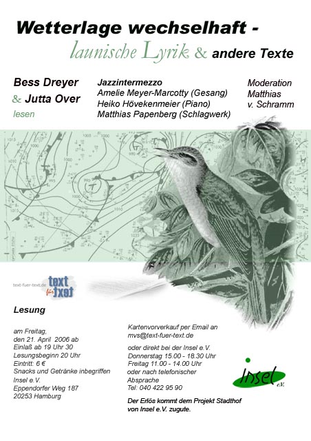 Wettervorhersage für diese Lesung lautete in etwa: wolkig bis bedeckt mit
