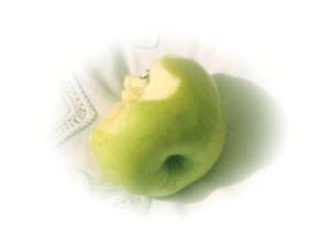 ruh heute weichem daunenkissen liegt ein apfel ... angebissen
