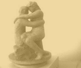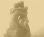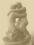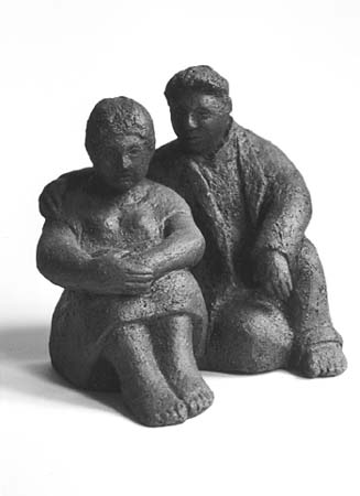 Umarmung 1999 Dieses 'Paar' entstand ohne Vorbild. Gegenüber den Frauenskulpturen und meinem ersten Paar , die sehr statisch sind, in sich ruhen wollen, ist diese "bewegt" aber dennoch in sich geschlossen. Sie könnte auch "Zuneigung" heißen. Die Fotos oben zeigen